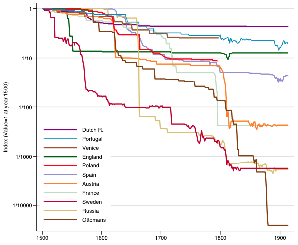 “It is not possible to increase the stock of one country by 20, 30 or 50 million without at the same time taking the same quantity from neighbouring states. Thus arises this two-fold increase, which has been so clearly discernible for several years past: on the one hand, the power and greatness of your Majesty increases, while on the other hand, that of your enemies and ill-wishers falls…I suppose that anyone would readily agree with this principle, namely, that is simply and solely the abundance of money within a state that makes the difference in its grandeur and power [Jean Colbert (1670)]